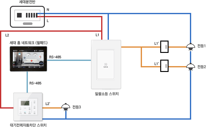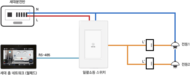 - 박스 : CSW1 - 일괄소등 - 옵션 ㆍ가스차단 ㆍ엘리베이터 콜 ㆍ3로 스위치 ㆍ대기전력 차단 |